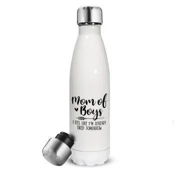 Mom of boys i feel like im already tired tomorrow, Μεταλλικό παγούρι θερμός Λευκό (Stainless steel), διπλού τοιχώματος, 500ml