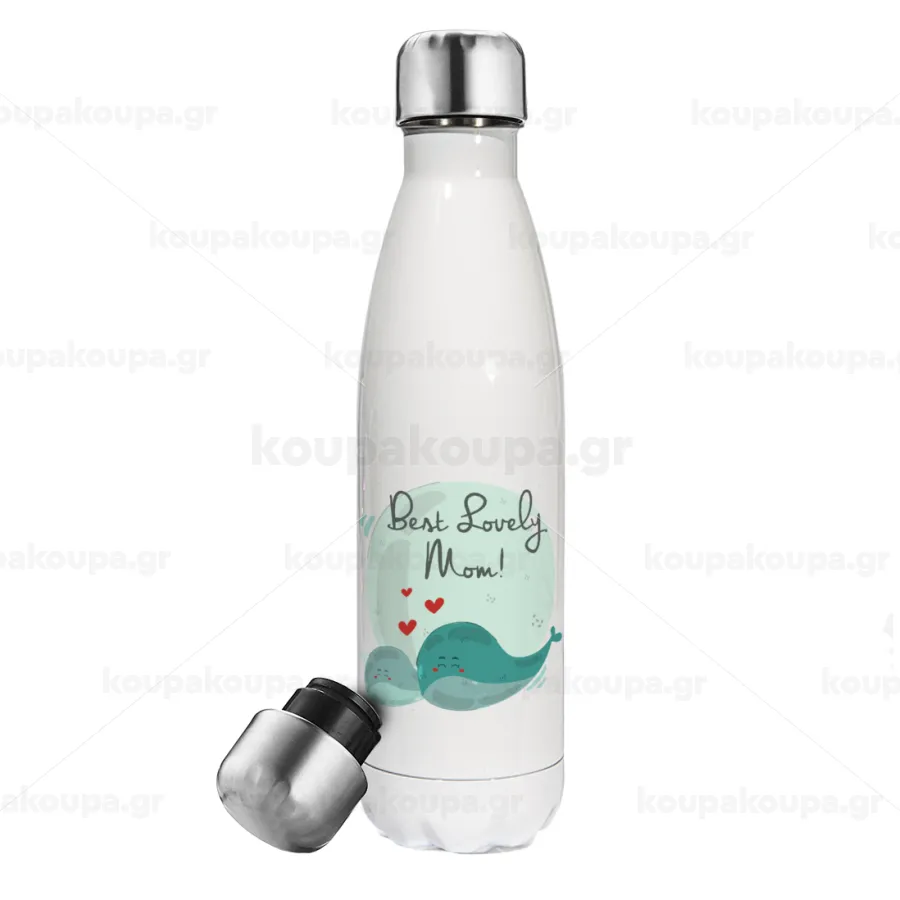 Mothers Day, whales, Μεταλλικό παγούρι θερμός Λευκό (Stainless steel), διπλού τοιχώματος, 500ml