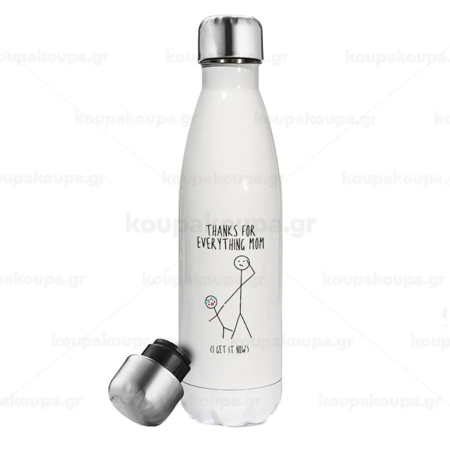 Thanks for everything mom, Μεταλλικό παγούρι θερμός Λευκό (Stainless steel), διπλού τοιχώματος, 500ml