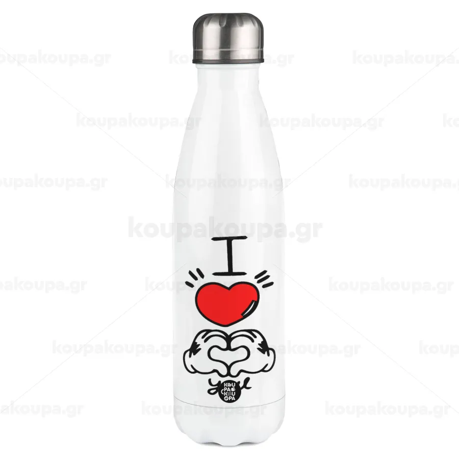 comics hands love, Μεταλλικό παγούρι θερμός Λευκό (Stainless steel), διπλού τοιχώματος, 500ml