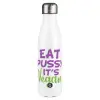 EAT pussy it's vegan, Μεταλλικό παγούρι θερμός Λευκό (Stainless steel), διπλού τοιχώματος, 500ml