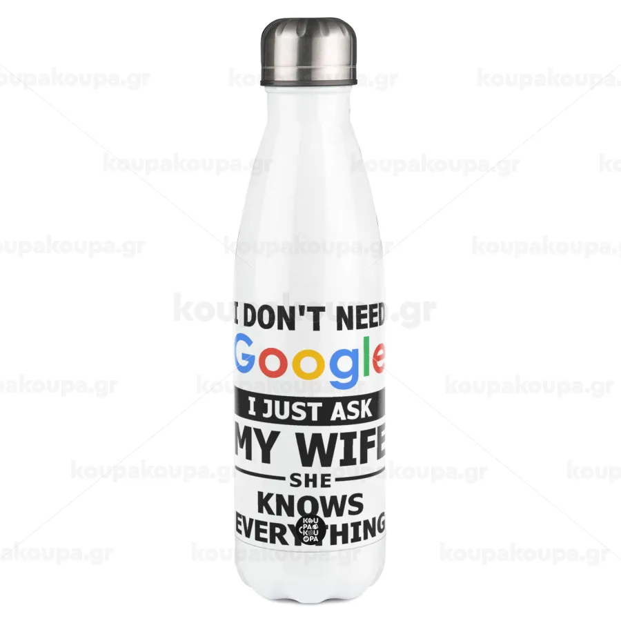 I don't need Google, just ask my WIFE, Μεταλλικό παγούρι θερμός Λευκό (Stainless steel), διπλού τοιχώματος, 500ml