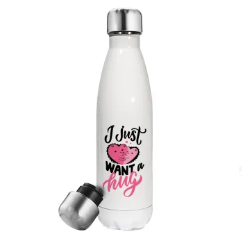 I Just want a hug!, Μεταλλικό παγούρι θερμός Λευκό (Stainless steel), διπλού τοιχώματος, 500ml