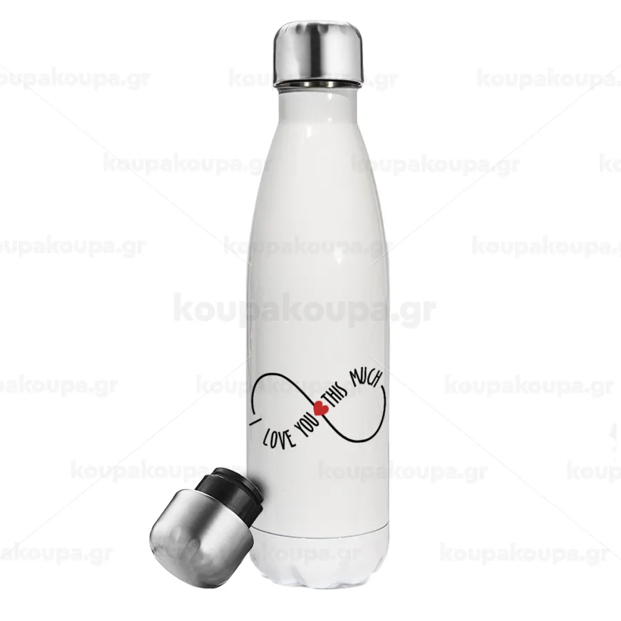 I Love you thisssss much (infinity), Μεταλλικό παγούρι θερμός Λευκό (Stainless steel), διπλού τοιχώματος, 500ml