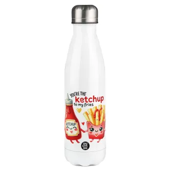 Ketchup To My Fries, Μεταλλικό παγούρι θερμός Λευκό (Stainless steel), διπλού τοιχώματος, 500ml
