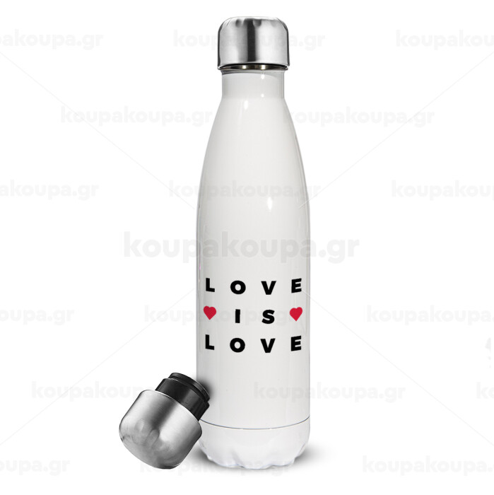 Love is Love, Μεταλλικό παγούρι θερμός Λευκό (Stainless steel), διπλού τοιχώματος, 500ml