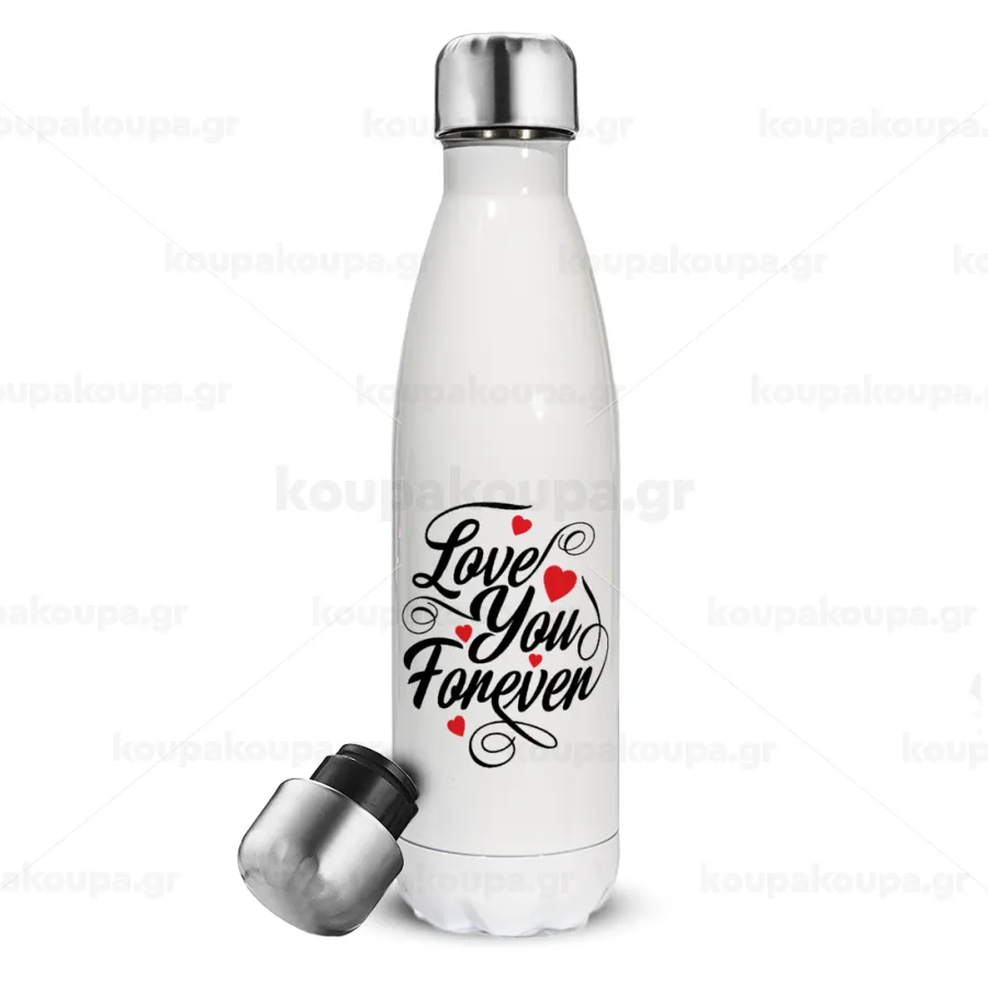 Love you forever, Μεταλλικό παγούρι θερμός Λευκό (Stainless steel), διπλού τοιχώματος, 500ml