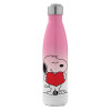 Snoopy takemy heart, Μεταλλικό παγούρι θερμός Λευκό (Stainless steel), διπλού τοιχώματος, 500ml