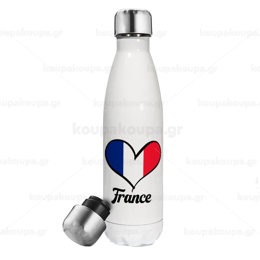 France flag, Μεταλλικό παγούρι θερμός Λευκό (Stainless steel), διπλού τοιχώματος, 500ml