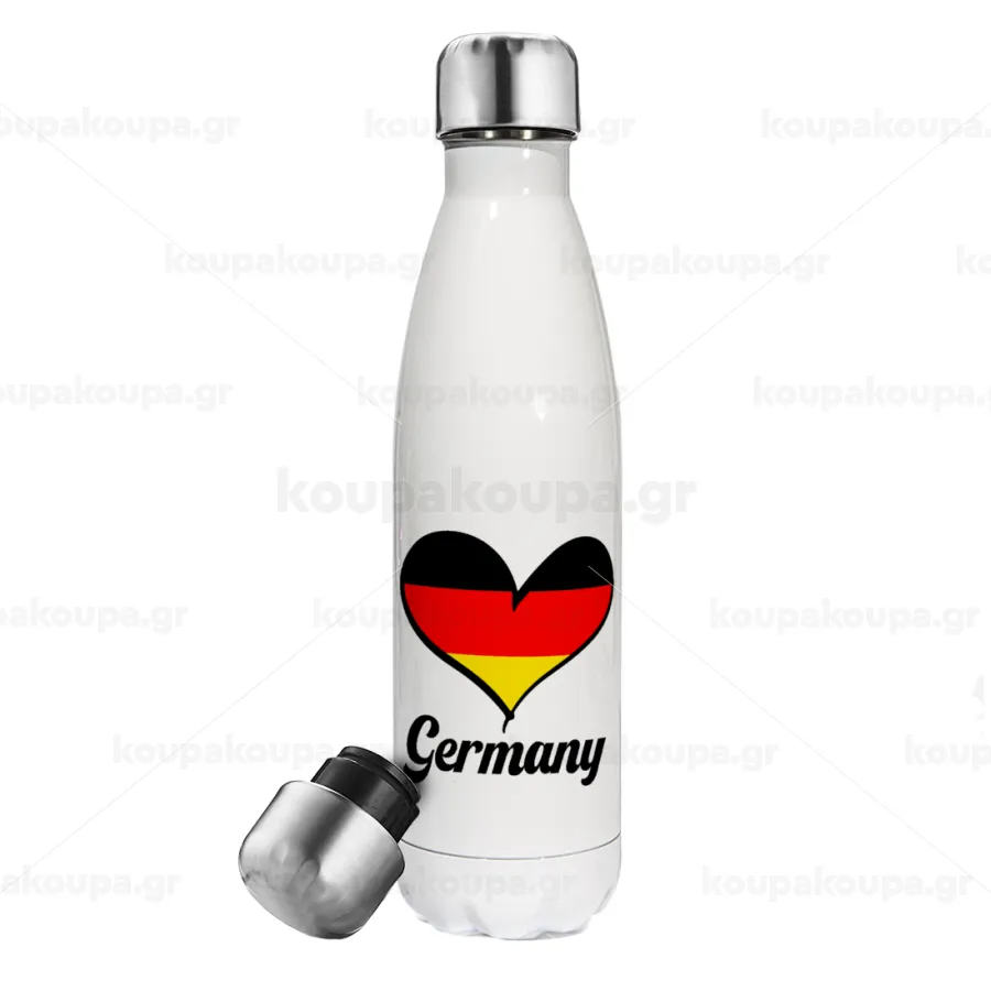 Germany flag, Μεταλλικό παγούρι θερμός Λευκό (Stainless steel), διπλού τοιχώματος, 500ml