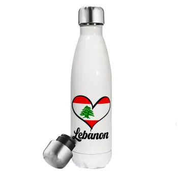 Lebanon flag, Μεταλλικό παγούρι θερμός Λευκό (Stainless steel), διπλού τοιχώματος, 500ml