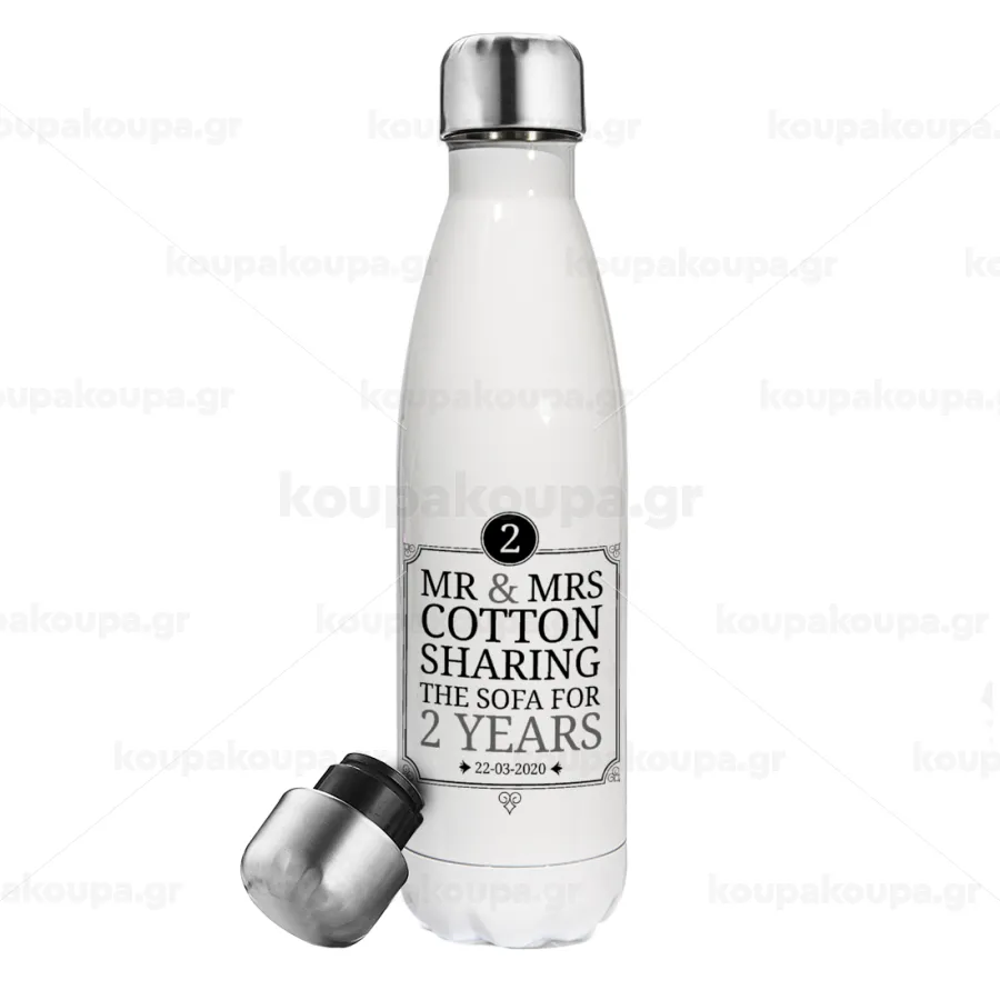 Mr & Mrs Sharing the sofa, Μεταλλικό παγούρι θερμός Λευκό (Stainless steel), διπλού τοιχώματος, 500ml