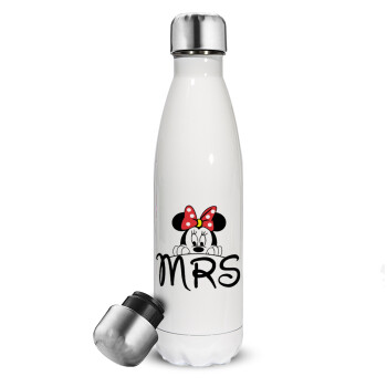 Minnie Mrs, Μεταλλικό παγούρι θερμός Λευκό (Stainless steel), διπλού τοιχώματος, 500ml