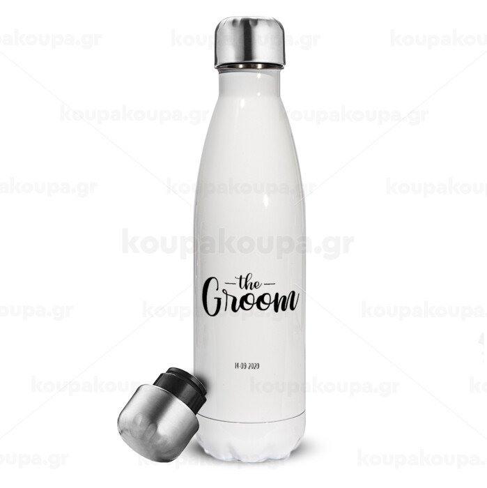 Groom & Bride (Groom), Μεταλλικό παγούρι θερμός Λευκό (Stainless steel), διπλού τοιχώματος, 500ml