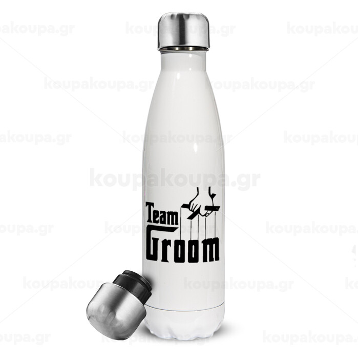 Team Groom, Μεταλλικό παγούρι θερμός Λευκό (Stainless steel), διπλού τοιχώματος, 500ml