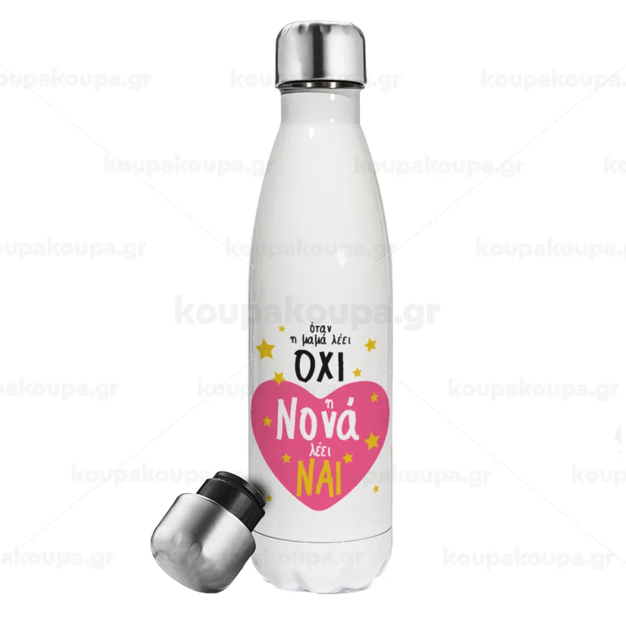 Η νονά λέει ναι!!!, Μεταλλικό παγούρι θερμός Λευκό (Stainless steel), διπλού τοιχώματος, 500ml
