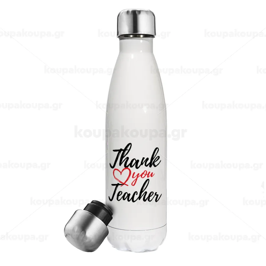 Thank you teacher, Μεταλλικό παγούρι θερμός Λευκό (Stainless steel), διπλού τοιχώματος, 500ml