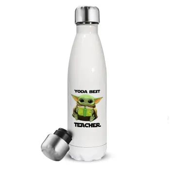Yoda Best Teacher, Μεταλλικό παγούρι θερμός Λευκό (Stainless steel), διπλού τοιχώματος, 500ml