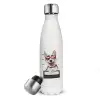 Warning, beware of Dog, Μεταλλικό παγούρι θερμός Λευκό (Stainless steel), διπλού τοιχώματος, 500ml