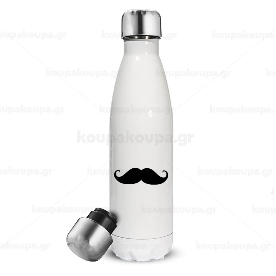 Μουστάκι, Μεταλλικό παγούρι θερμός Λευκό (Stainless steel), διπλού τοιχώματος, 500ml