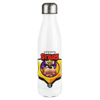 Brawl Stars Ruffs, Μεταλλικό παγούρι θερμός Λευκό (Stainless steel), διπλού τοιχώματος, 500ml
