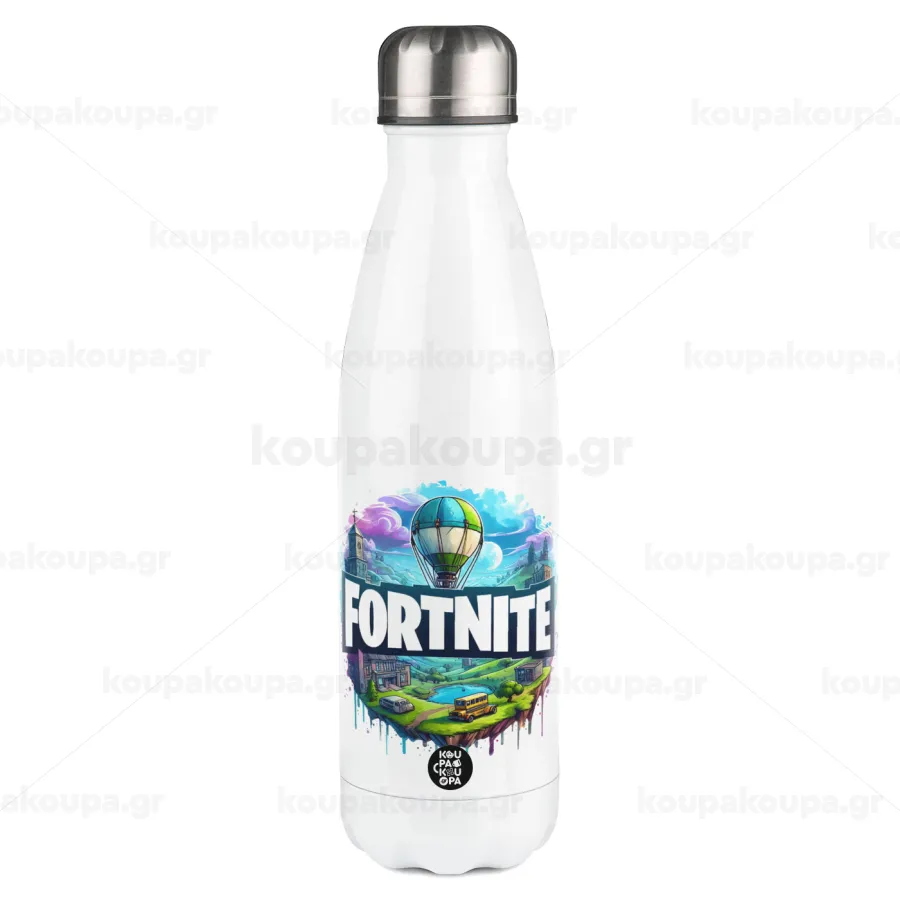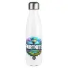 Fortnite land, Μεταλλικό παγούρι θερμός Λευκό (Stainless steel), διπλού τοιχώματος, 500ml