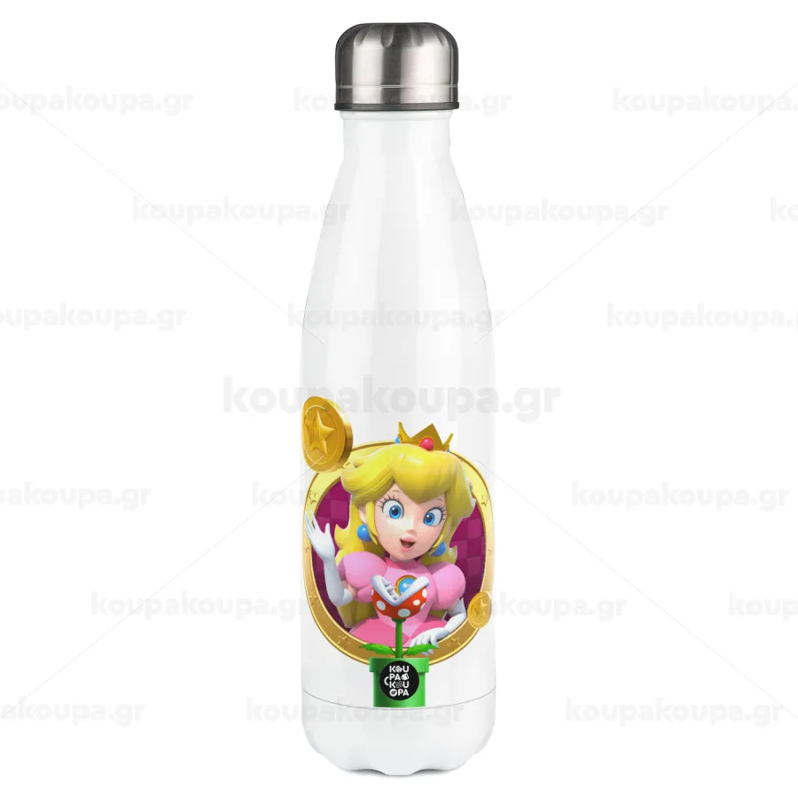 Princess Peach Toadstool, Μεταλλικό παγούρι θερμός Λευκό (Stainless steel), διπλού τοιχώματος, 500ml