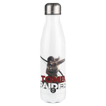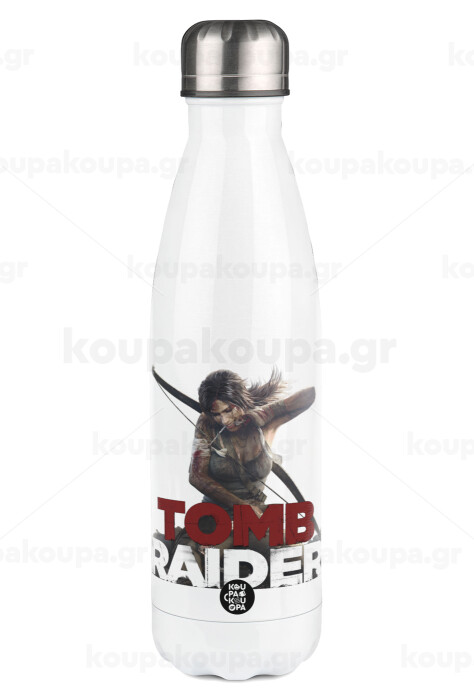 Tomb raider, Μεταλλικό παγούρι θερμός Λευκό (Stainless steel), διπλού τοιχώματος, 500ml
