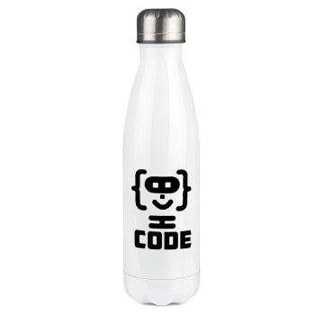 Code Heroes symbol, Μεταλλικό παγούρι θερμός Λευκό (Stainless steel), διπλού τοιχώματος, 500ml