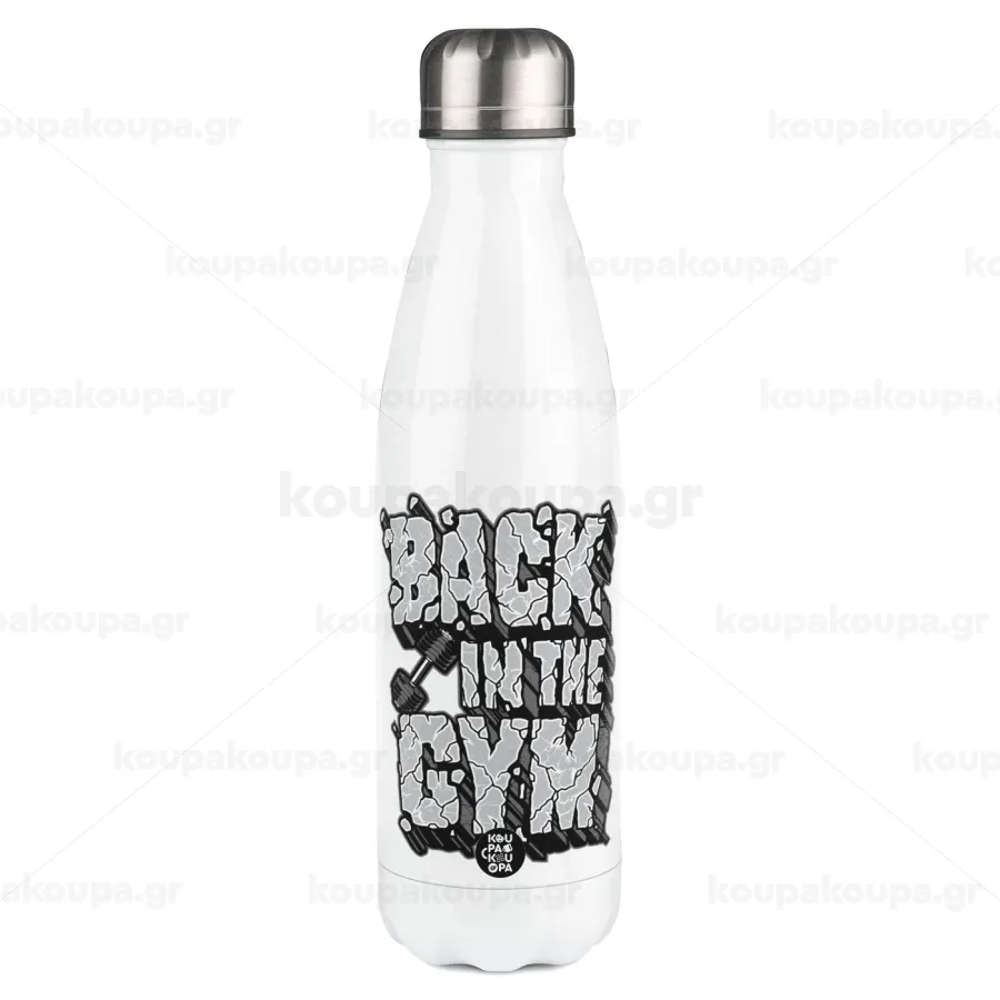 Back in the GYM, Μεταλλικό παγούρι θερμός Λευκό (Stainless steel), διπλού τοιχώματος, 500ml