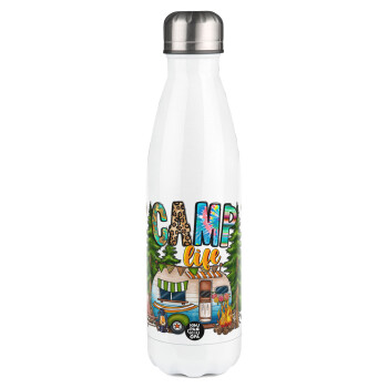 Camp Life, Μεταλλικό παγούρι θερμός Λευκό (Stainless steel), διπλού τοιχώματος, 500ml