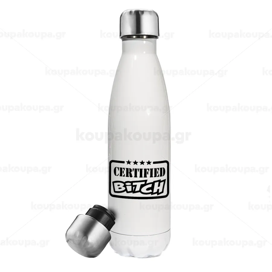 Certified Bitch, Μεταλλικό παγούρι θερμός Λευκό (Stainless steel), διπλού τοιχώματος, 500ml