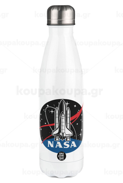 NASA Badge, Μεταλλικό παγούρι θερμός Λευκό (Stainless steel), διπλού τοιχώματος, 500ml
