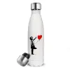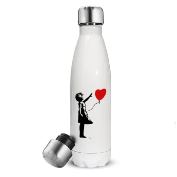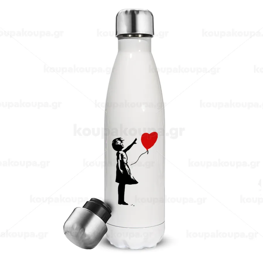 Banksy (Hope), Μεταλλικό παγούρι θερμός Λευκό (Stainless steel), διπλού τοιχώματος, 500ml