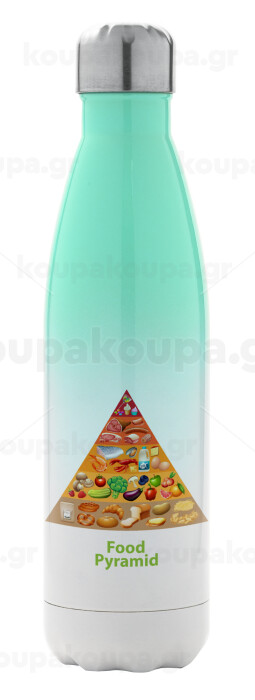 Διατροφική πυραμίδα, Μεταλλικό παγούρι θερμός Πράσινο/Λευκό (Stainless steel), διπλού τοιχώματος, 500ml