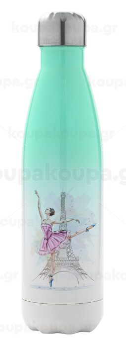 Ballerina in Paris, Μεταλλικό παγούρι θερμός Πράσινο/Λευκό (Stainless steel), διπλού τοιχώματος, 500ml