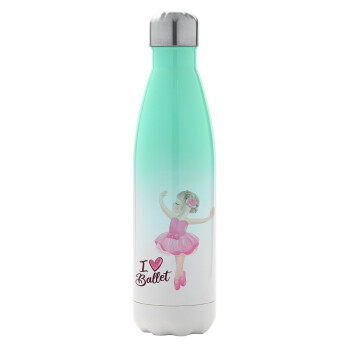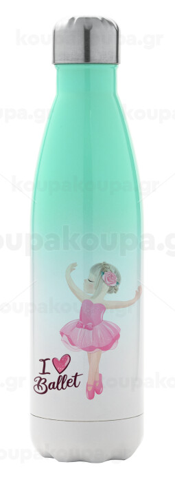 I Love Ballet, Μεταλλικό παγούρι θερμός Πράσινο/Λευκό (Stainless steel), διπλού τοιχώματος, 500ml