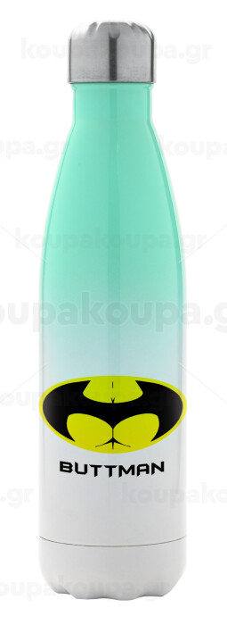 Buttman, Μεταλλικό παγούρι θερμός Πράσινο/Λευκό (Stainless steel), διπλού τοιχώματος, 500ml