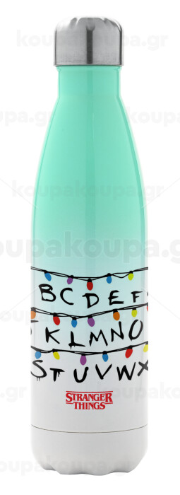 Stranger Things ABC, Μεταλλικό παγούρι θερμός Πράσινο/Λευκό (Stainless steel), διπλού τοιχώματος, 500ml