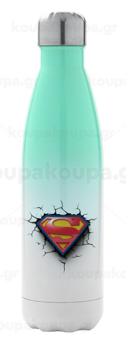 Superman cracked, Μεταλλικό παγούρι θερμός Πράσινο/Λευκό (Stainless steel), διπλού τοιχώματος, 500ml