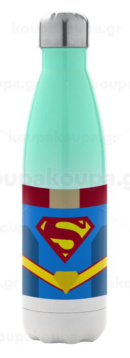 Superman flat, Μεταλλικό παγούρι θερμός Πράσινο/Λευκό (Stainless steel), διπλού τοιχώματος, 500ml