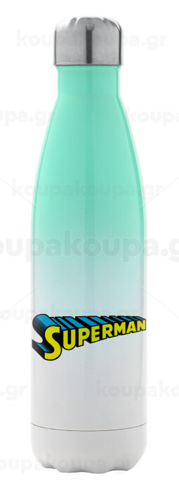 Superman vintage, Μεταλλικό παγούρι θερμός Πράσινο/Λευκό (Stainless steel), διπλού τοιχώματος, 500ml