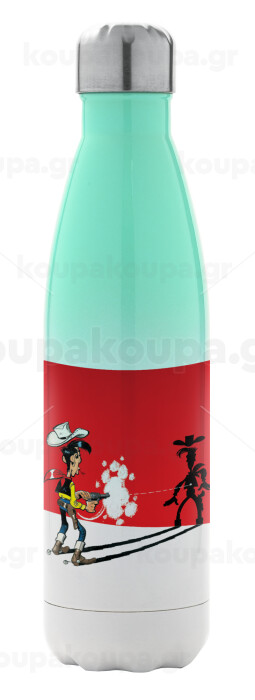 Λούκυ Λουκ σκιές, Μεταλλικό παγούρι θερμός Πράσινο/Λευκό (Stainless steel), διπλού τοιχώματος, 500ml