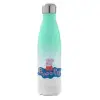 Πέππα το γουρουνάκι μπλε με όνομα, Μεταλλικό παγούρι θερμός Πράσινο/Λευκό (Stainless steel), διπλού τοιχώματος, 500ml