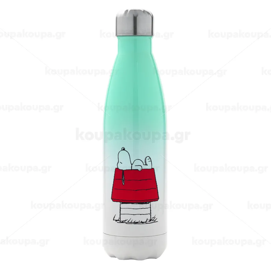 Το σπίτι του snoopy, Μεταλλικό παγούρι θερμός Πράσινο/Λευκό (Stainless steel), διπλού τοιχώματος, 500ml