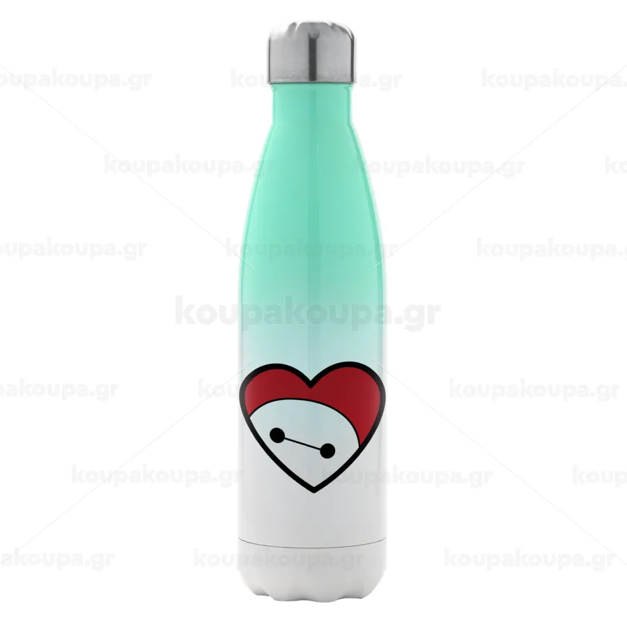 Baymax heart, Μεταλλικό παγούρι θερμός Πράσινο/Λευκό (Stainless steel), διπλού τοιχώματος, 500ml