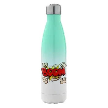 BOOM!!!, Μεταλλικό παγούρι θερμός Πράσινο/Λευκό (Stainless steel), διπλού τοιχώματος, 500ml