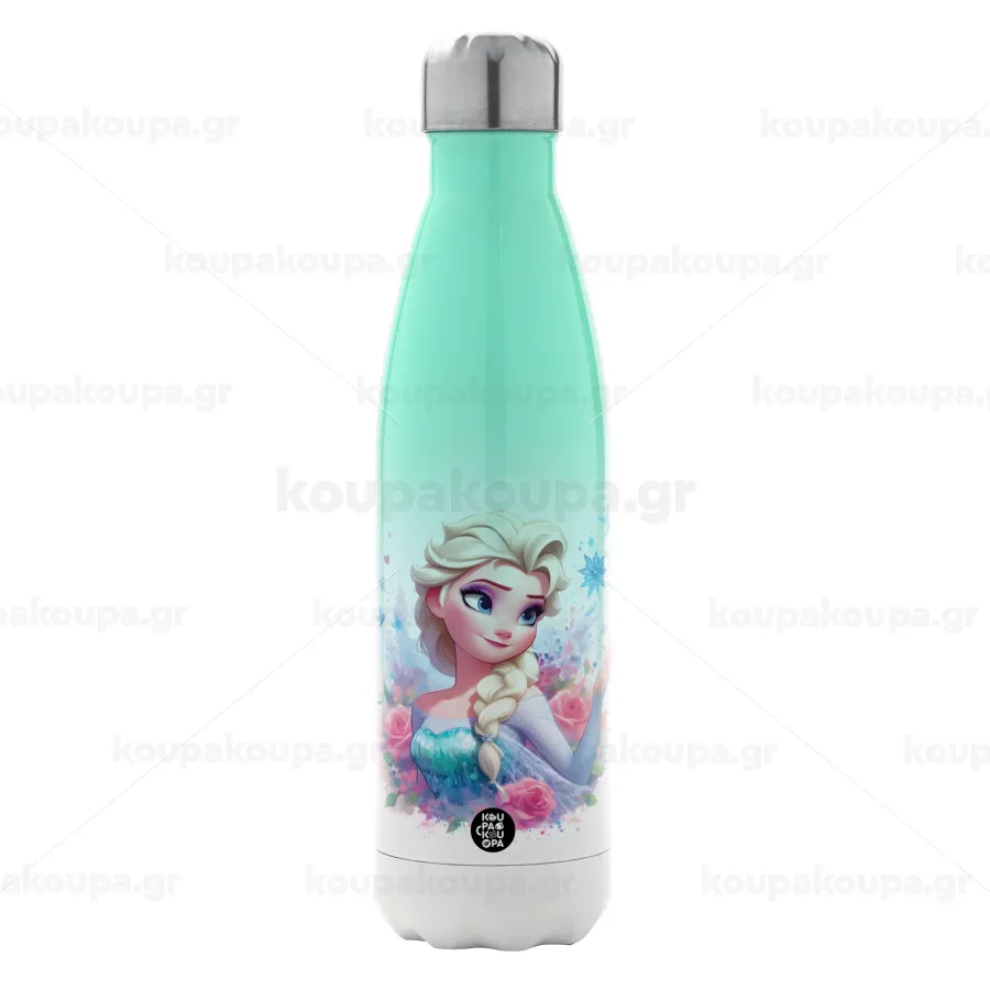 Elsa Princess, Μεταλλικό παγούρι θερμός Πράσινο/Λευκό (Stainless steel), διπλού τοιχώματος, 500ml