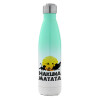Hakuna Matata, Μεταλλικό παγούρι θερμός Πράσινο/Λευκό (Stainless steel), διπλού τοιχώματος, 500ml