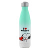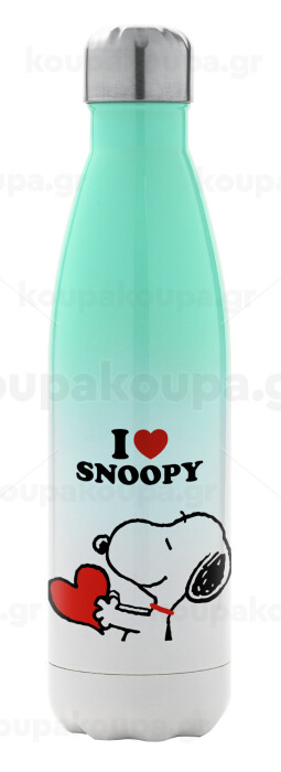 I LOVE SNOOPY, Μεταλλικό παγούρι θερμός Πράσινο/Λευκό (Stainless steel), διπλού τοιχώματος, 500ml